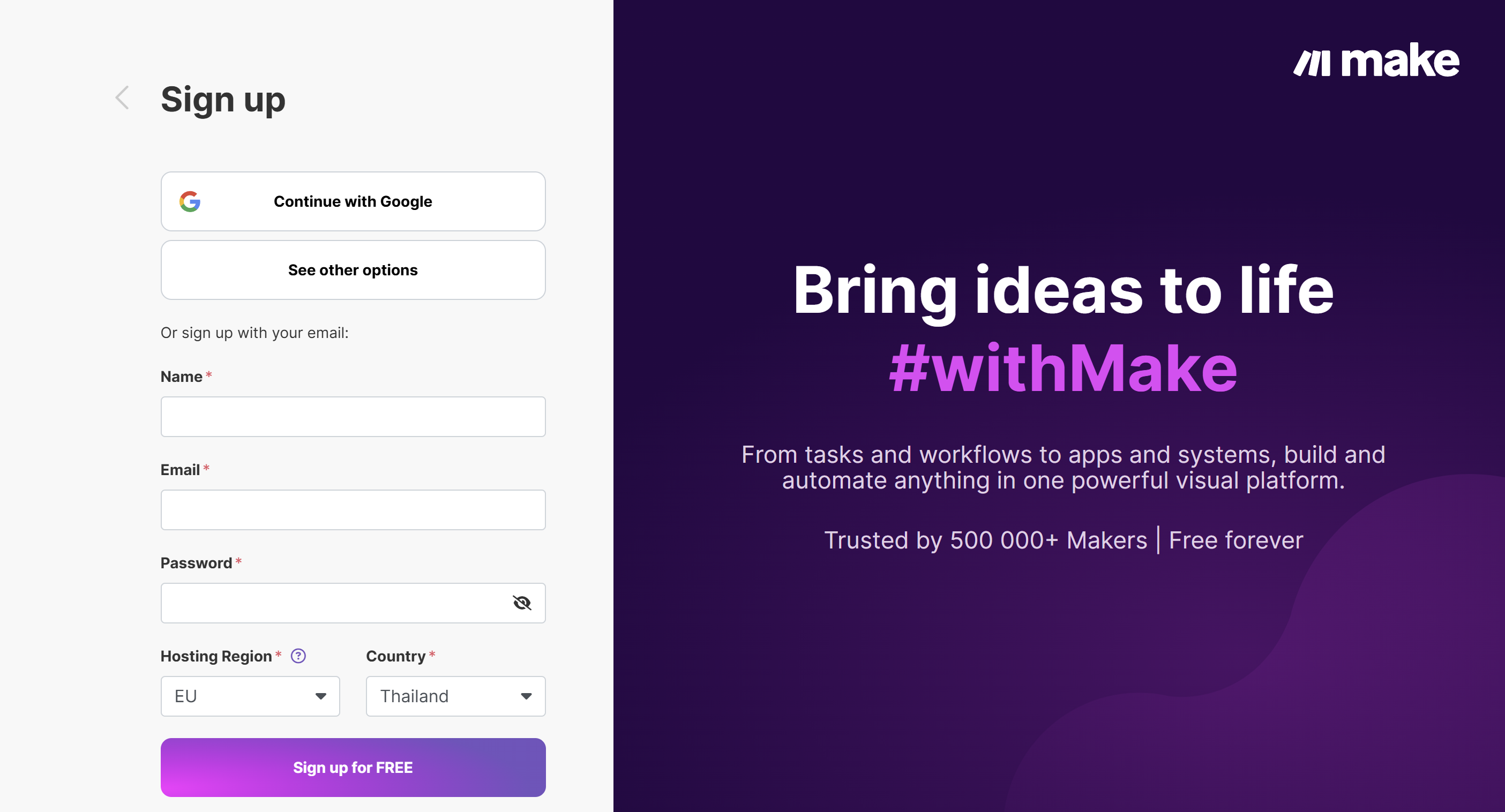 ก่อนอื่น ก็เข้าไปที่ Make.com เลยครับ