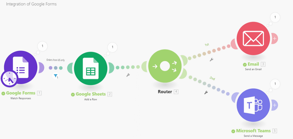• เมื่อมีคนกรอกแบบฟอร์มบนเว็บไซต์ → ระบบส่งข้อมูลเข้า Google Sheets, CRM, Chat แจ้งเตือนอัตโนมัติ
