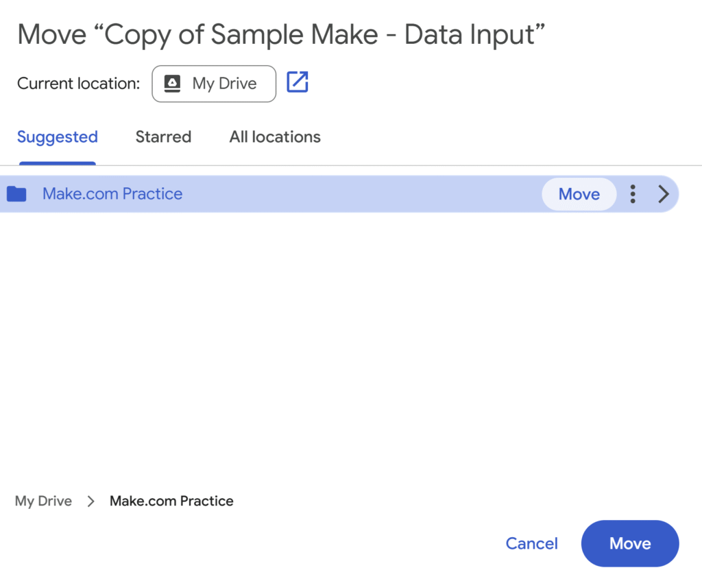 จากนั้นก็ให้ย้ายไฟล์ไปไว้ที่ Folder แบบเดียวกับ Google Sheet ครับ
