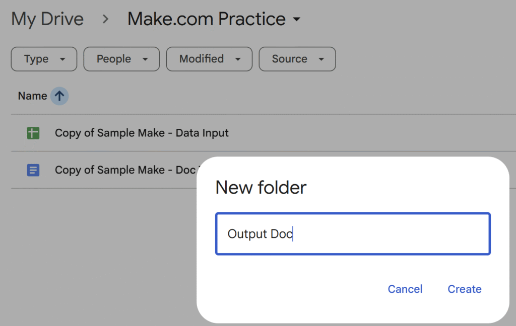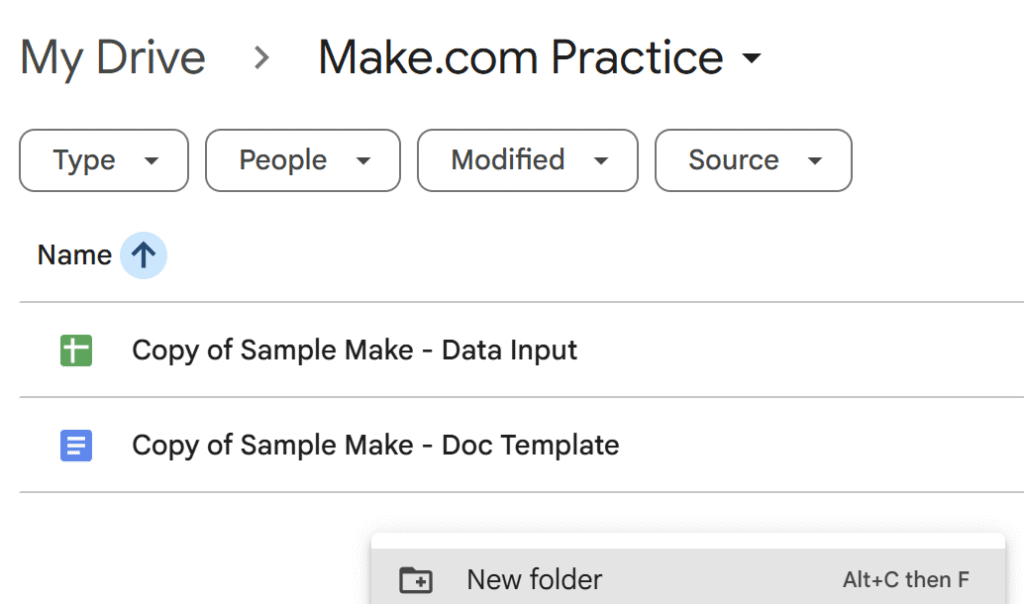จากนั้น ก็ให้สร้าง Folder ใหม่ไว้ข้างในอีกที เพื่อเอาไว้เก็บเอกสารที่สร้างจาก Make.com ครับ