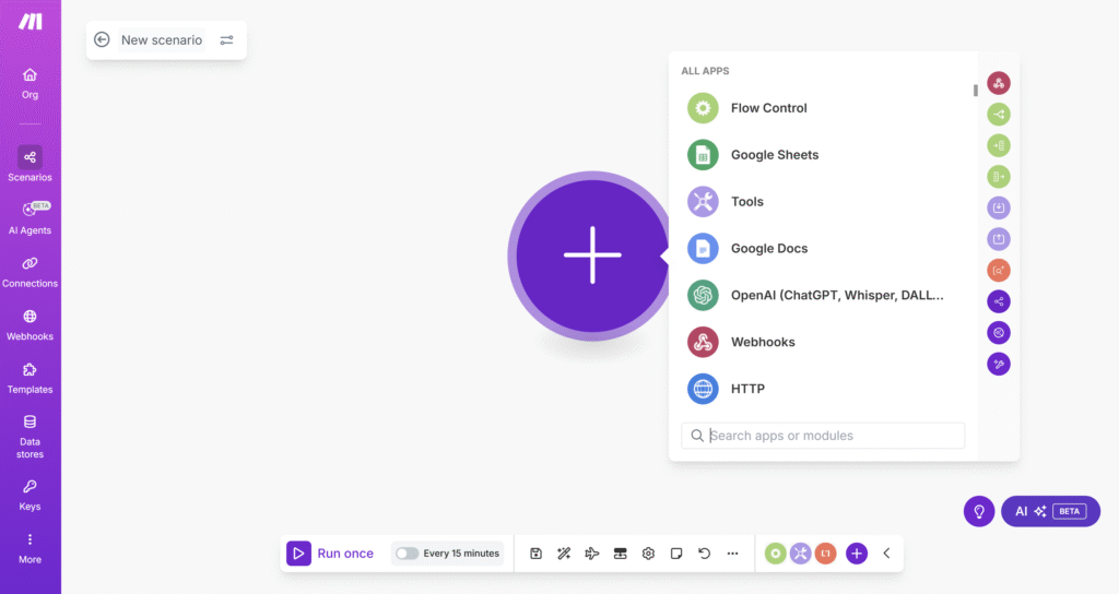 โดยคุณทำได้ด้วยการ “ลากและเชื่อมต่อ” แทนการเขียนแบบเดิมๆ อย่างการเขียนโปรแกรม ทำให้ Make.com เป็นหนึ่งในเครื่องมือที่เรียกว่า No-Code Automation Tool หรือก็คือฟ เครื่องมือที่ทำให้คนทั่วไปสามารถสร้างระบบอัตโนมัติได้ด้วยเอง โดยไม่ต้องพึ่งพาโปรแกรมเมอร์หรือเขียนโปรแกรมเอง