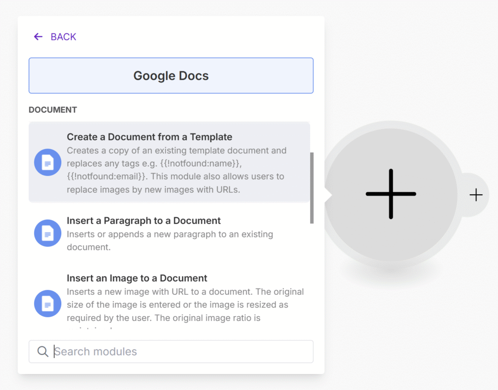จากนั้น ให้กดปุ่มบวกที่ทางขวาของ Module นี้ เพื่อเพิ่ม Module ของ Google Doc ครับ